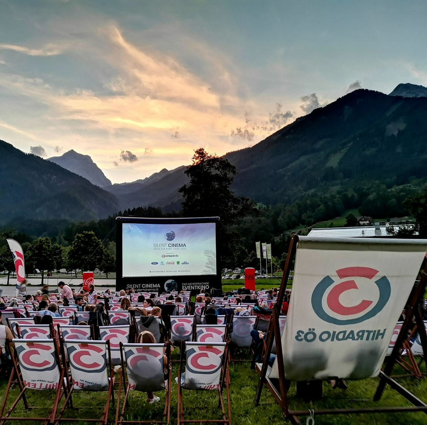 Silent Cinema is an open-air cinema tour that travels through Austria in cooperation with Ö3 – one of Austria’s biggest radio stations. From Graz via Lake Wörthersee to Vienna, Linz, and Innsbruck – always flexible with the inflatable screen in tow.
